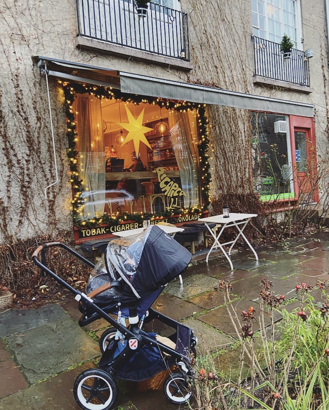 Liten økologisk kafe og butikk. Vogn kan ikke tas med inn, men det er et koselig lite sted som absolutt anbefales. Her er stellebord, barnestoler, barnemat – alt som trengs!